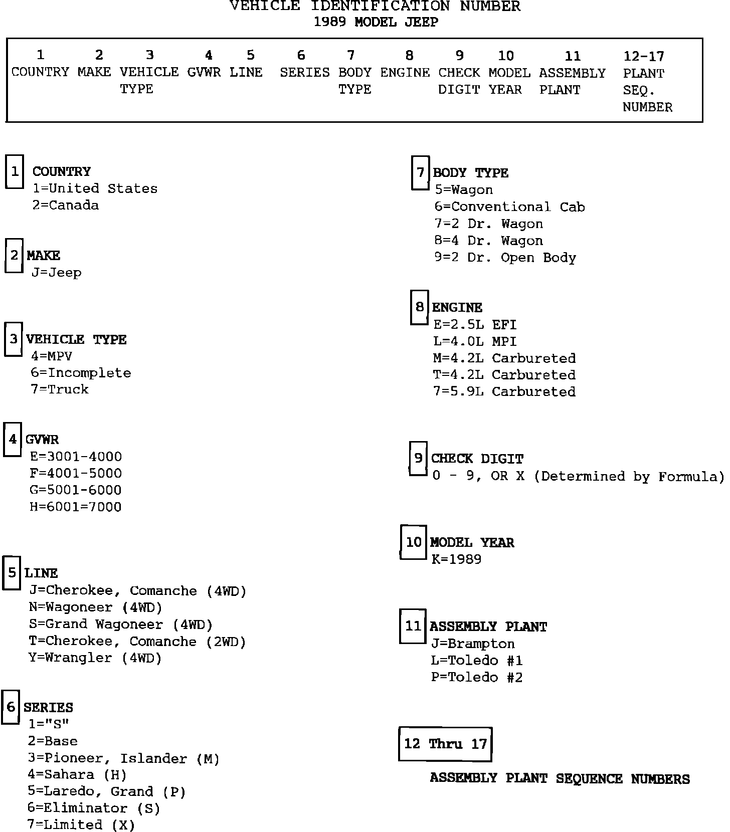 Vehicle Identification Number - Index