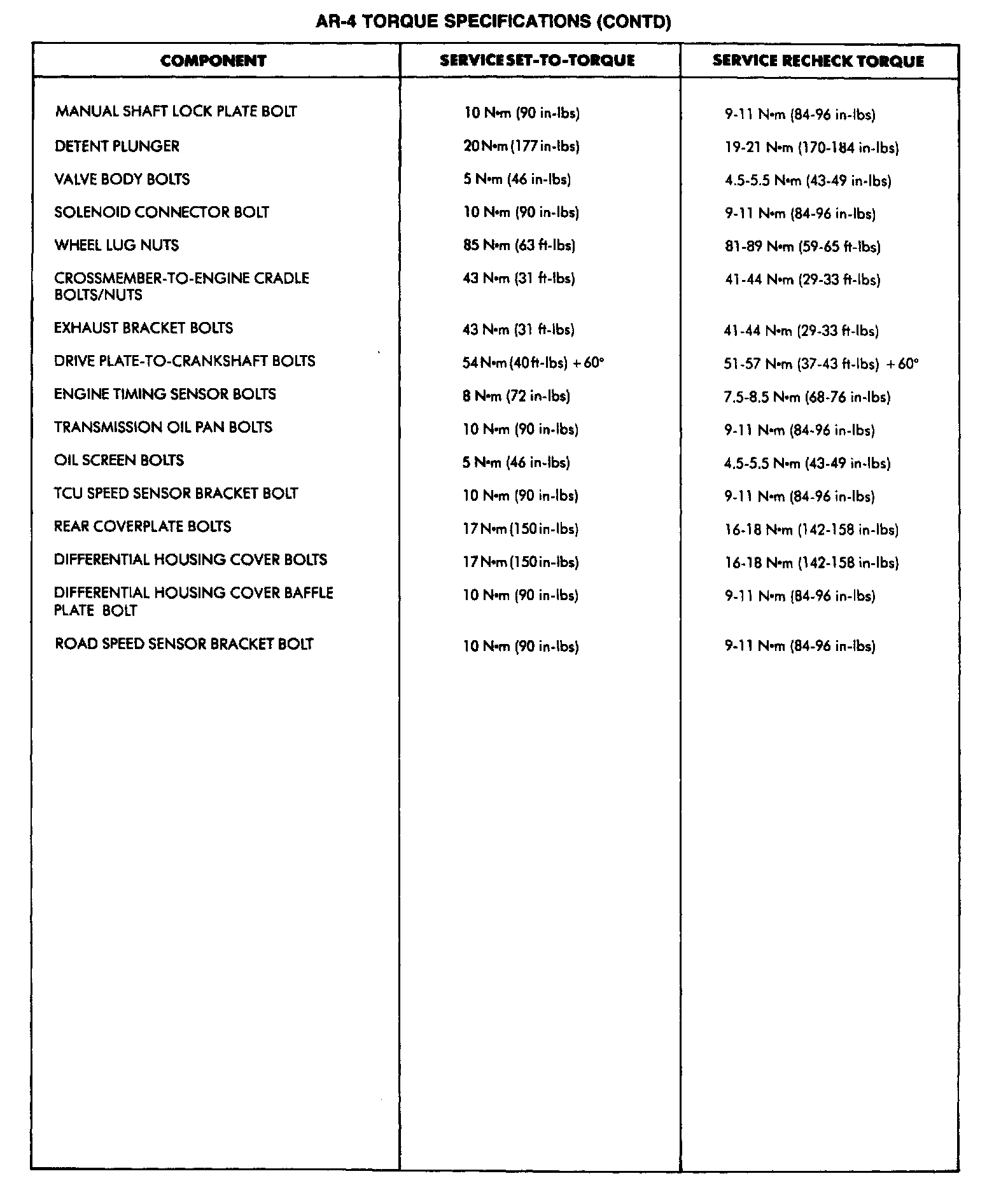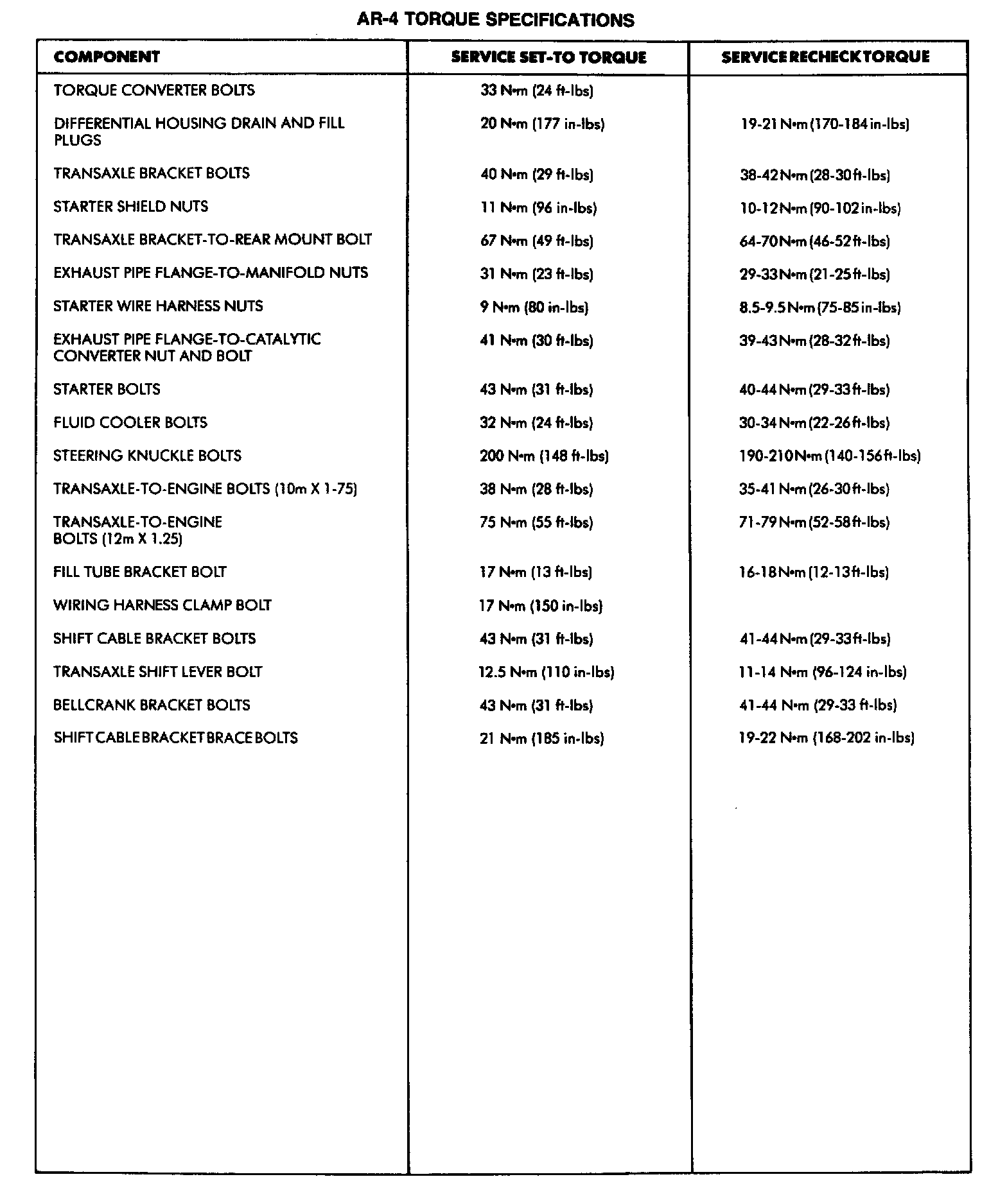 AR-4 Torque Specifications: