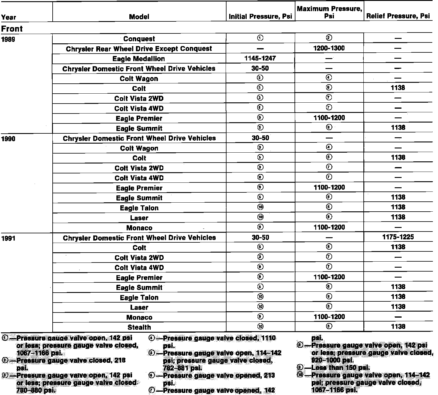 Power Steering Pressure Specifications: