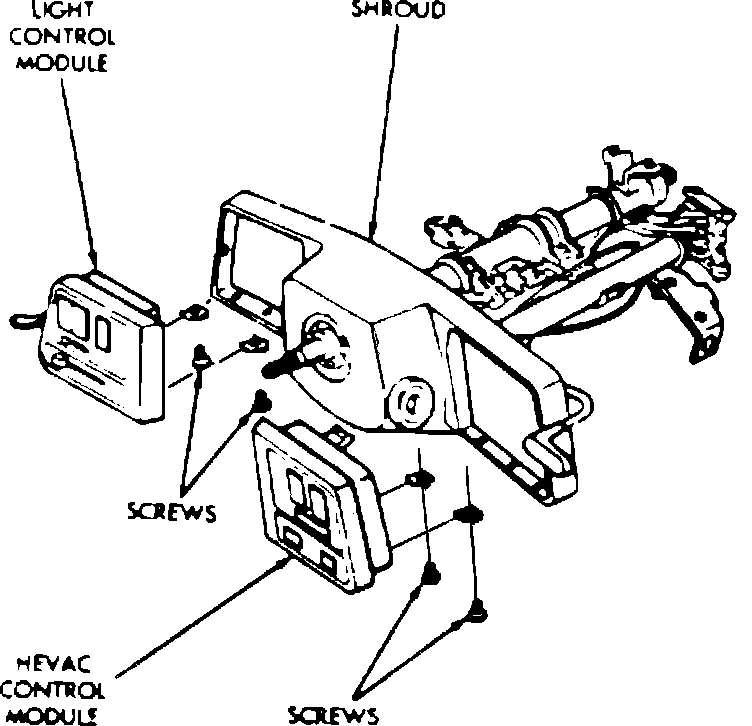 f. Remove shroud to control module screws, then remove both control modules from pods. This will provide access to four shroud to bracket internal screws.