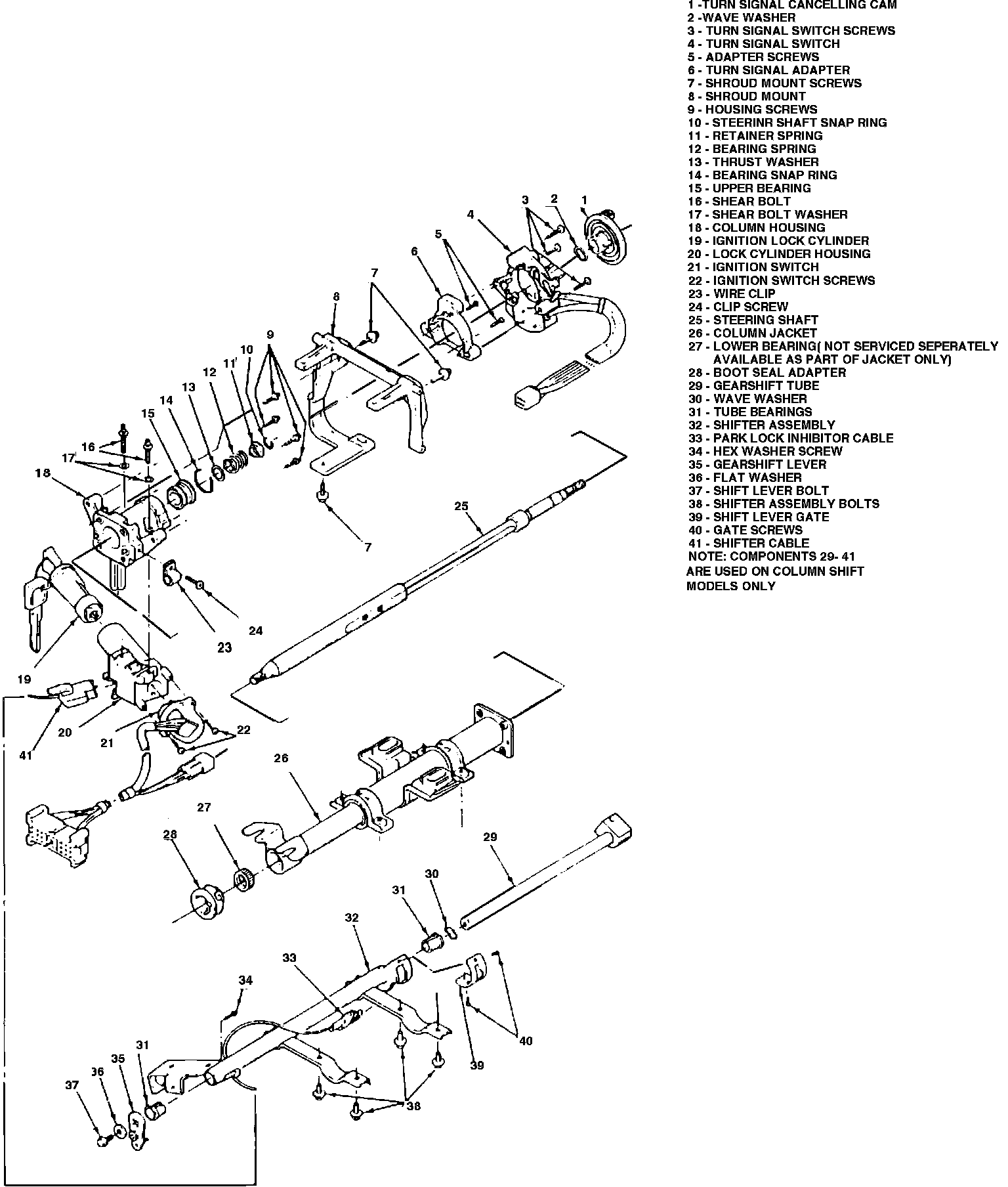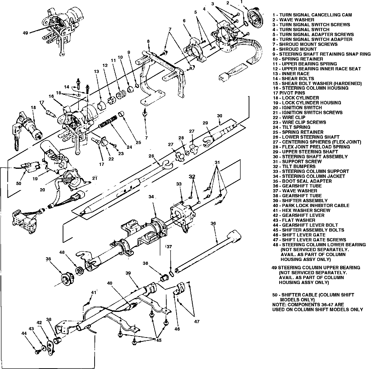 2. If standard column lower bearing, or either upper or lower tilt column bearing needs replacement, the entire column jacket assembly must be replaced.