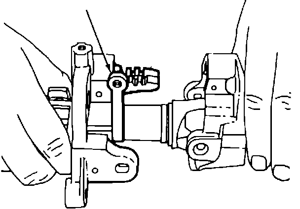 c. Align pivot pin and support holes. Housing lock shoes must be retracted with lever, in order to align holes.