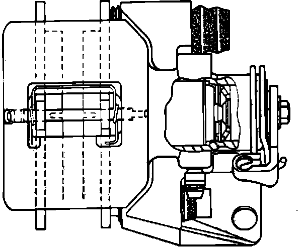 Although two different calipers are used, both designs are single piston, slider-type calipers. The calipers are mounted with slide pins and bushings to allow the necessary lateral movement during operation.