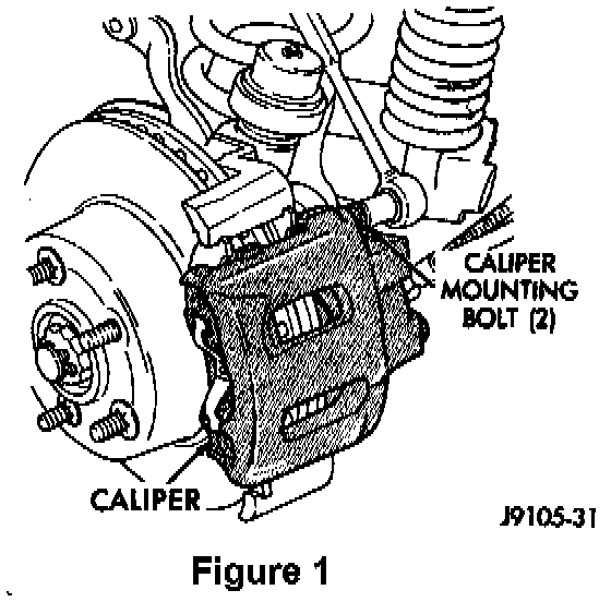 3. Remove the caliper mounting bolts (Figure 1).