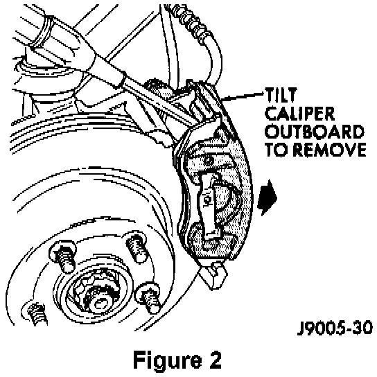 4. Tilt the top of the caliper outward (Figure 2). Use a pry tool if necessary.