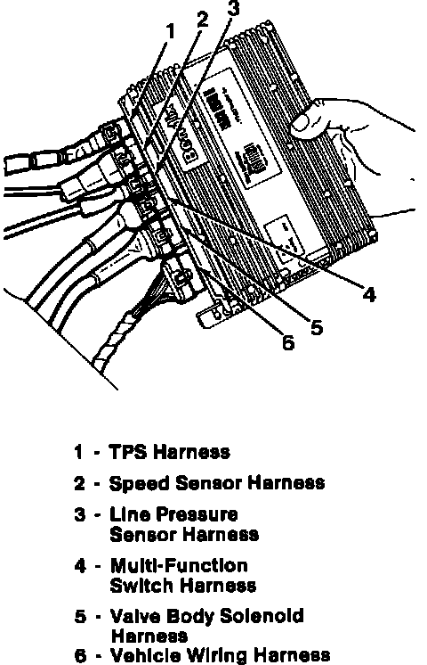Fig. 2 Transmission Control Unit (TCU) & Sensor Harness Locations: