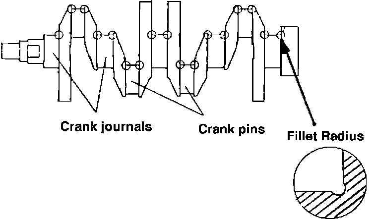 The new crankshaft design can be visually identified easily by the relief cut at the crankshaft journal and pin fillets as shown in the illustration below.