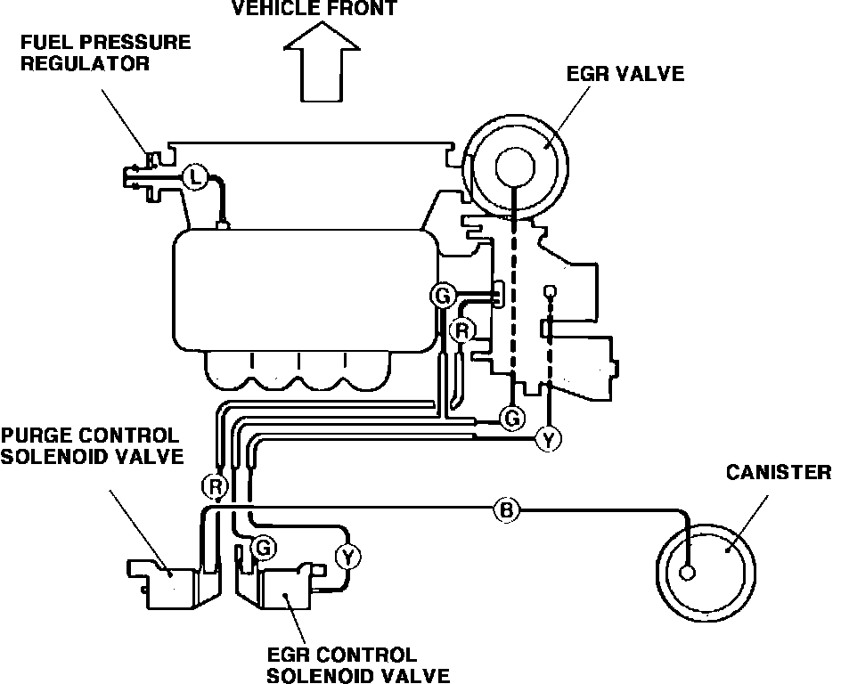 There are two methods used for controlling EGR operation. Non-California vehicles use a coolant temperature sensitive Thermo Valve. California vehicles make use of a computer controlled EGR Solenoid Valve. California models also incorporate an Exhaust Gas Temperature Sensor within the EGR valve. The sensor is used for detecting exhaust gas recirculation flow as an input to the ECU. If the temperature sensor should malfunction, the ECU will set a trouble code but the EGR system may not be affected.