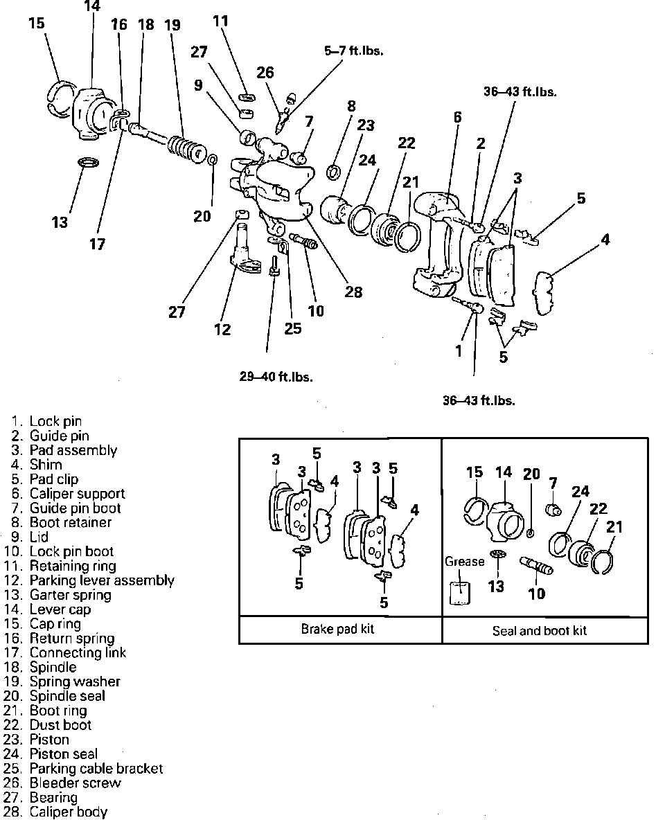 8. Depress brake pedal several times to seat pads, then check and replenish brake fluid as necessary.