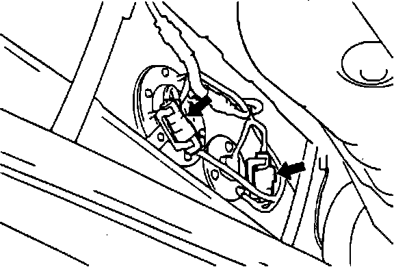 The fuel pump is located inside the fuel tank mounted on the forward wall of the fuel tank directly under the connector.