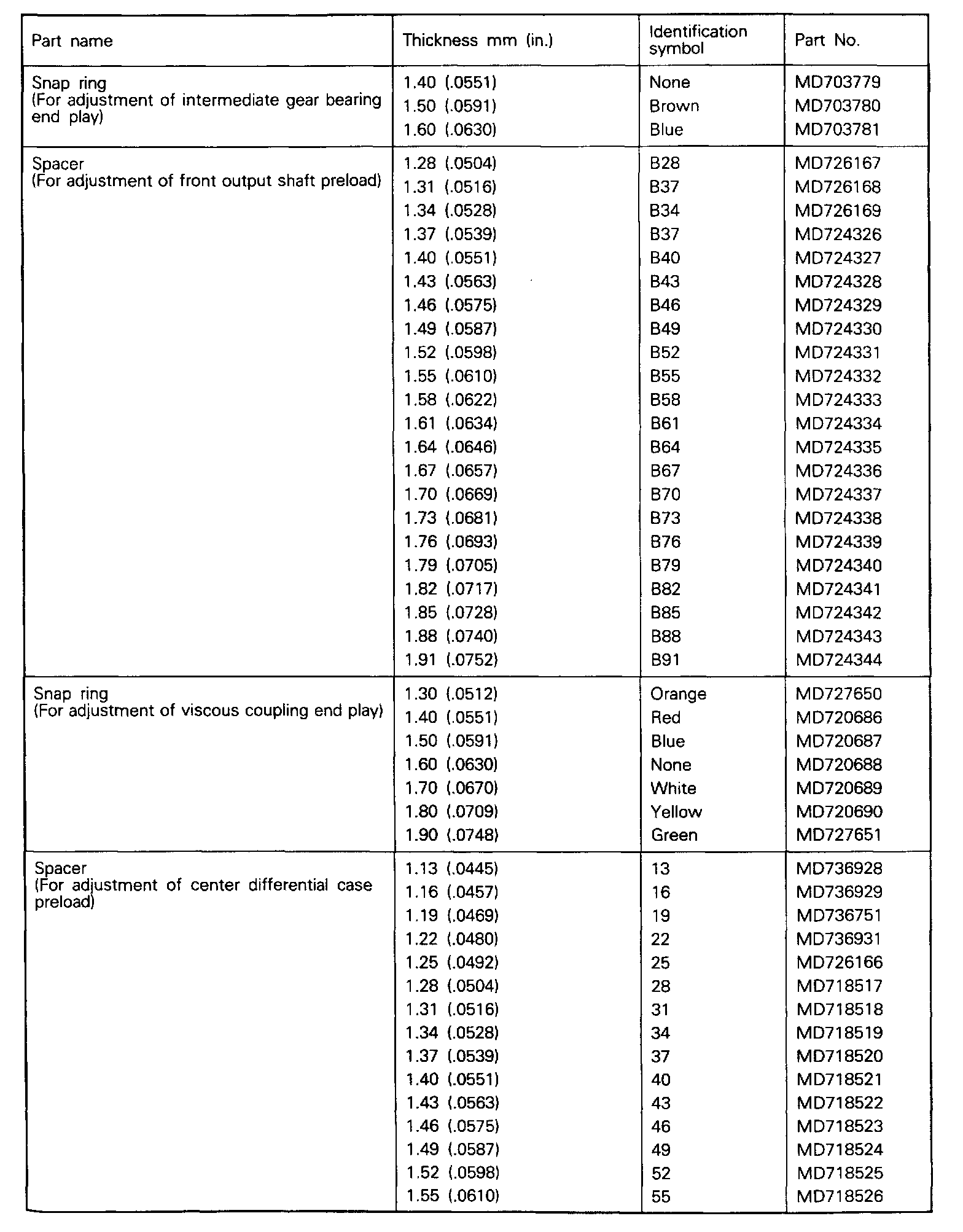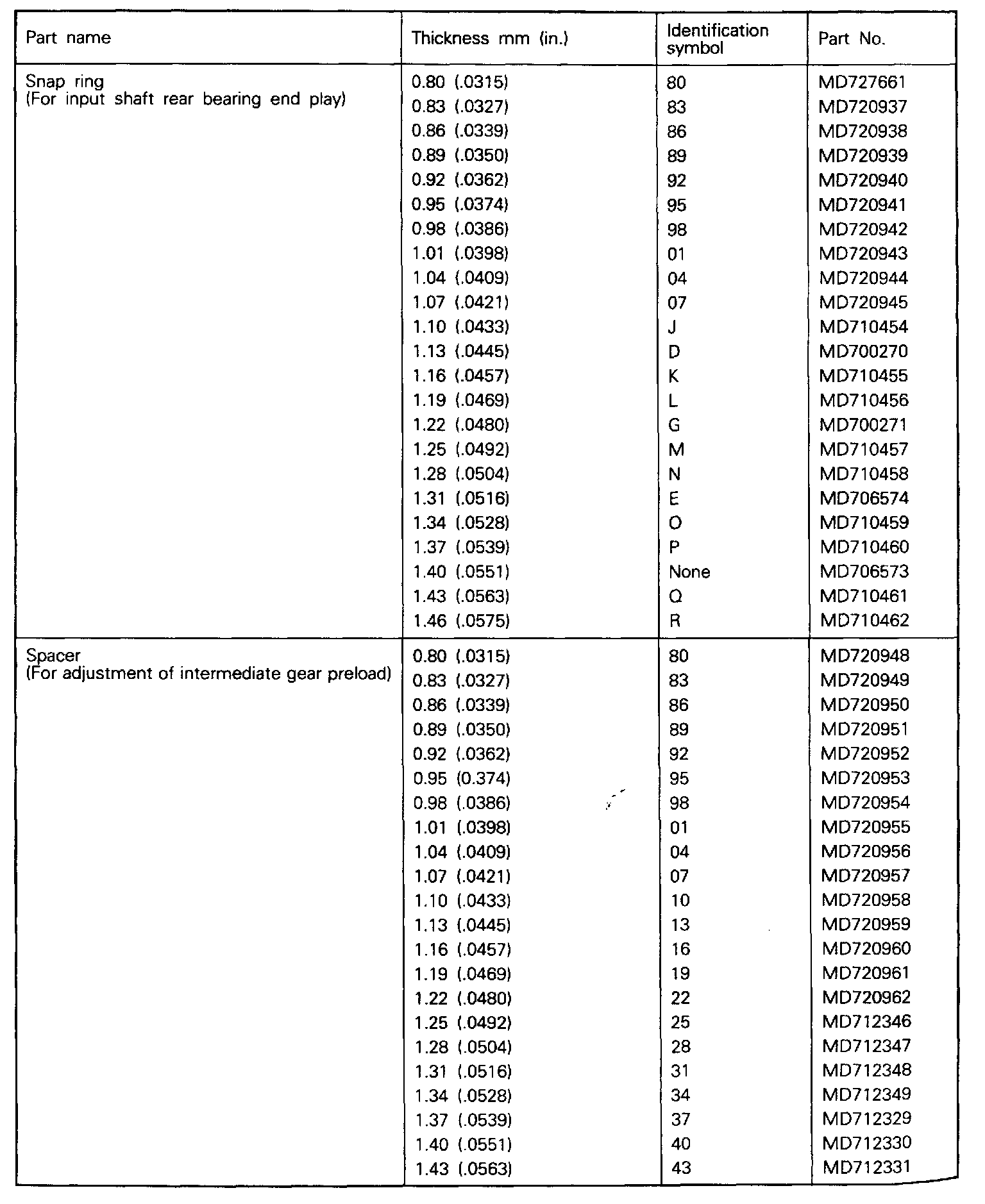 Snap Ring (For Adjustment) And Spacer:
