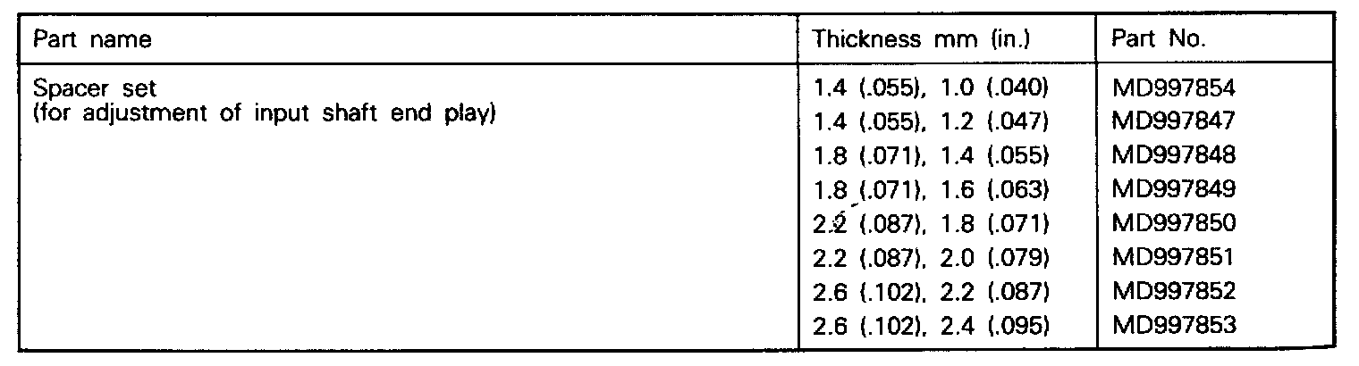 Spacer Set (Input Shaft):