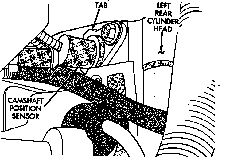 1. Loosely install the cam sensor with the tab facing the rear of the engine.