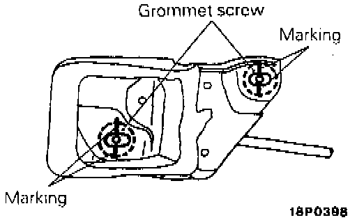 2. When the door inside handle of a sedan is mounted, align the marking with the center of the grommet screw.