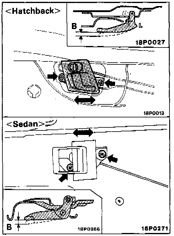 Move the door inside handle installation position back and forth to adjust so that the inside handle play allowance agrees with the standard value.