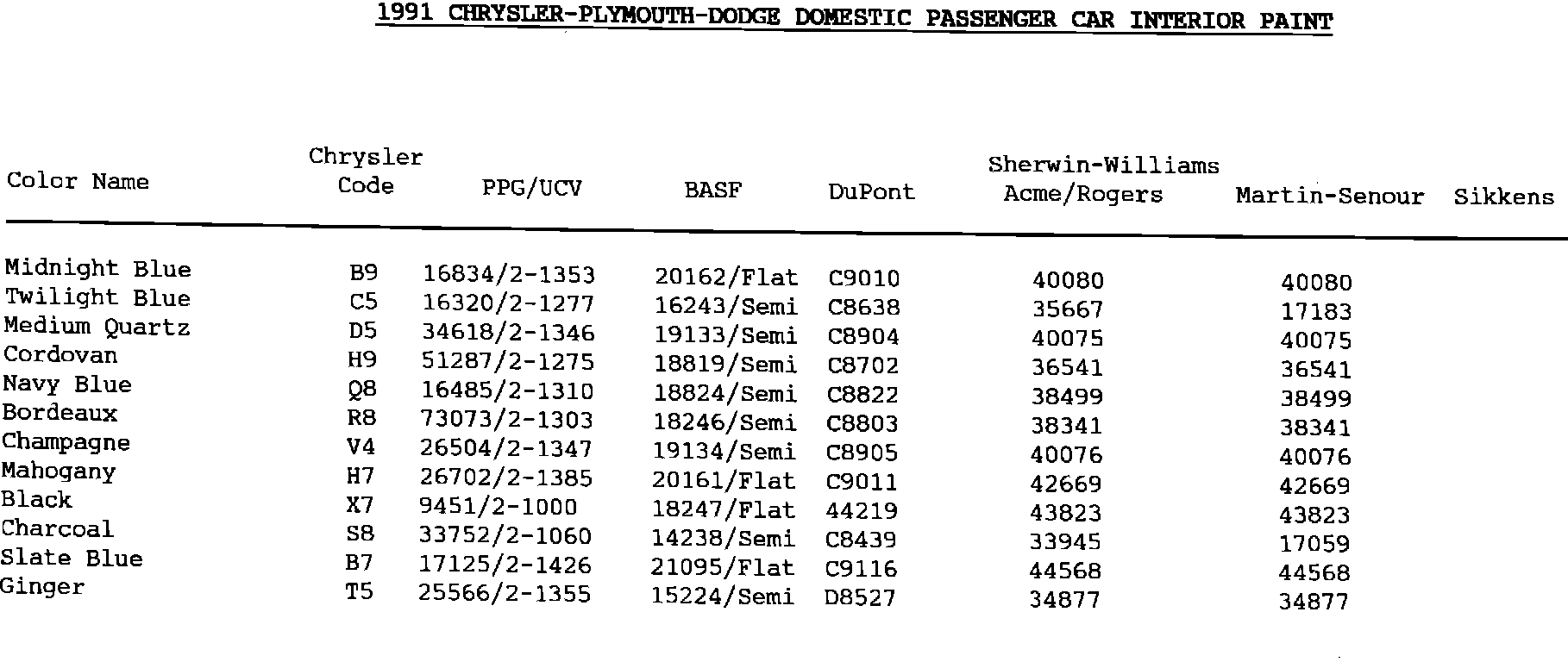 Domestic Passenger Car Interior Paint