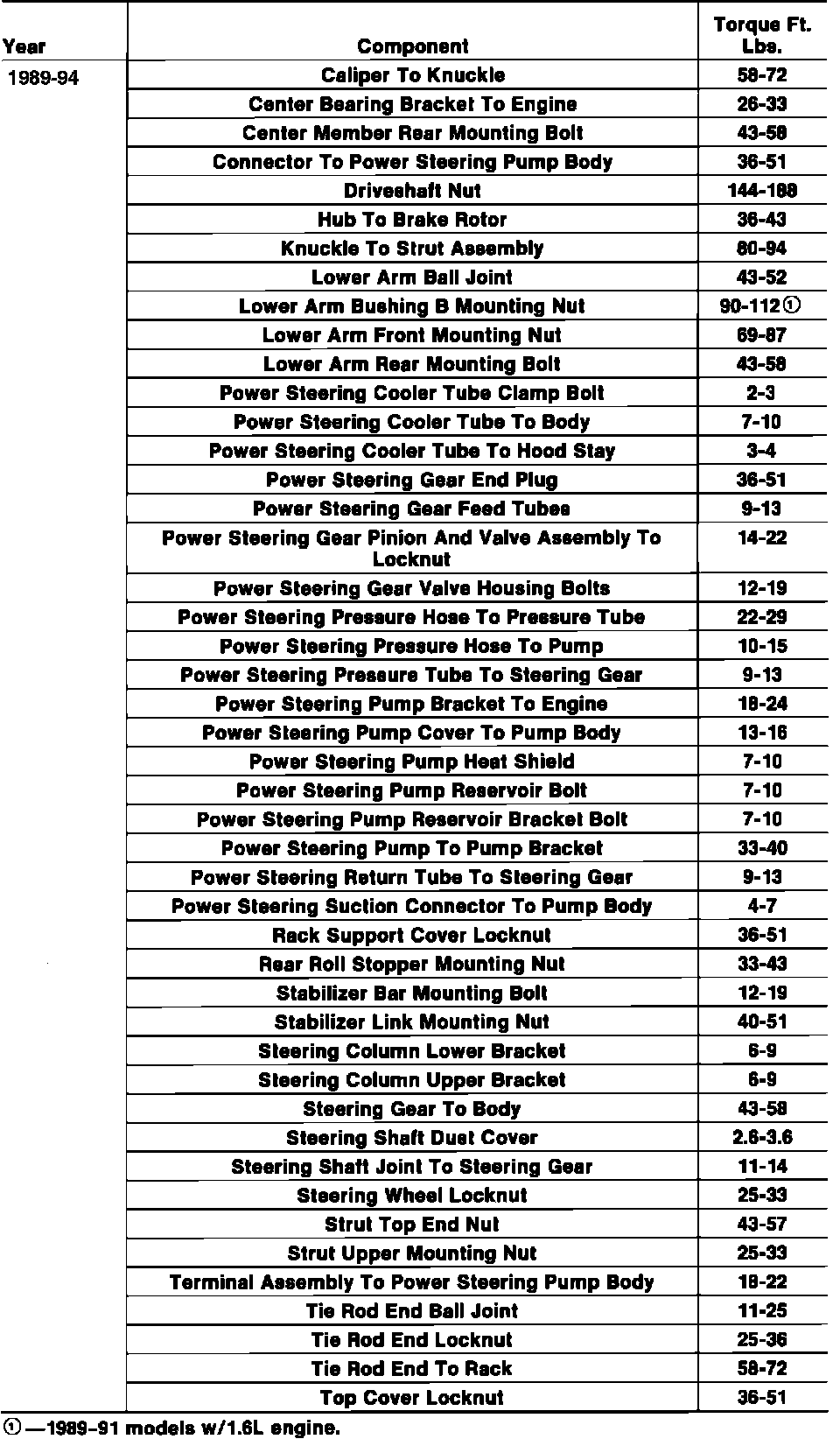 Tightening Specifications: