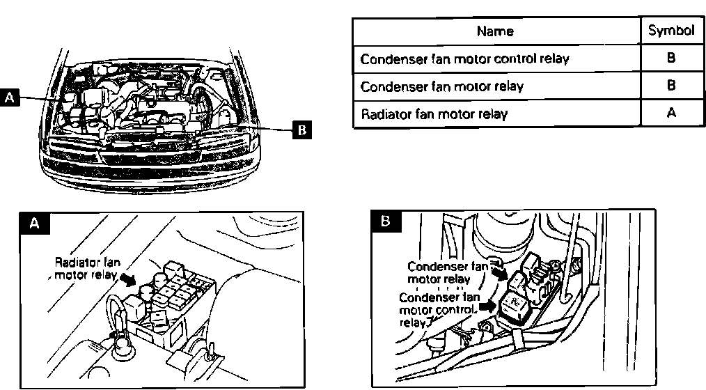 Radiator & Condenser Fan Relay Locations.: