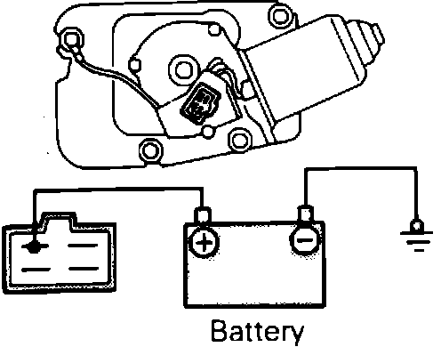 2. Connect battery to wiper motor and ensure motor operates at high speed.
