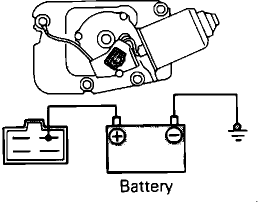1. Connect battery to wiper motor and ensure motor operation at low speed.