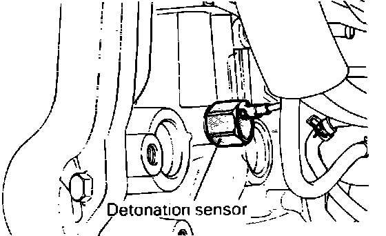 It is installed on the engine block and consists of three elements: Titanium Oxide, Zirconium Oxide and Lead. If engine knocking occurs, the crystal shakes causing an A/C voltage to be produced. The magnitude of the input signal is used by the Multi-Point Fuel Injection (MPI) controller to determine how much spark timing retarding (maximum of 12° at the crankshaft) is required, and how much turbo boost is needed to reduce the engine knocking. With this system, the MPI controller controls ignition timing advance and turbo boost to a point immediately before engine knock occurs. Normally the wastegate solenoid is fully grounded when the key is on, allowing the maximum boost by bleeding of wastegate operating pressure. However if the sensor is shorted (0 Volts) or the circuit is open (5 Volts), the MPI controller retards the timing and lowers the maximum boost from 12 PSI to 9 PSI, dependent upon the load and RPM information. When this happens it controls the wastegate solenoid operation to eliminate knocking three ways: