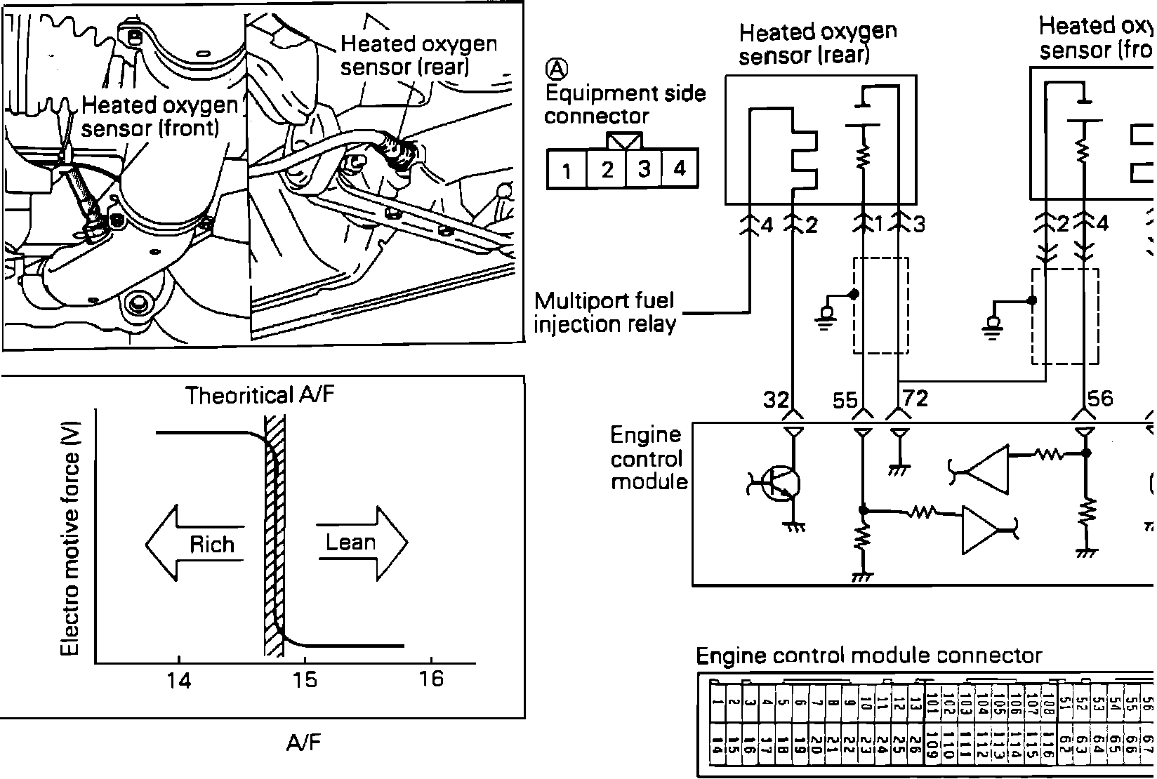 1. Disconnect the oxygen sensor and the ECM connectors.