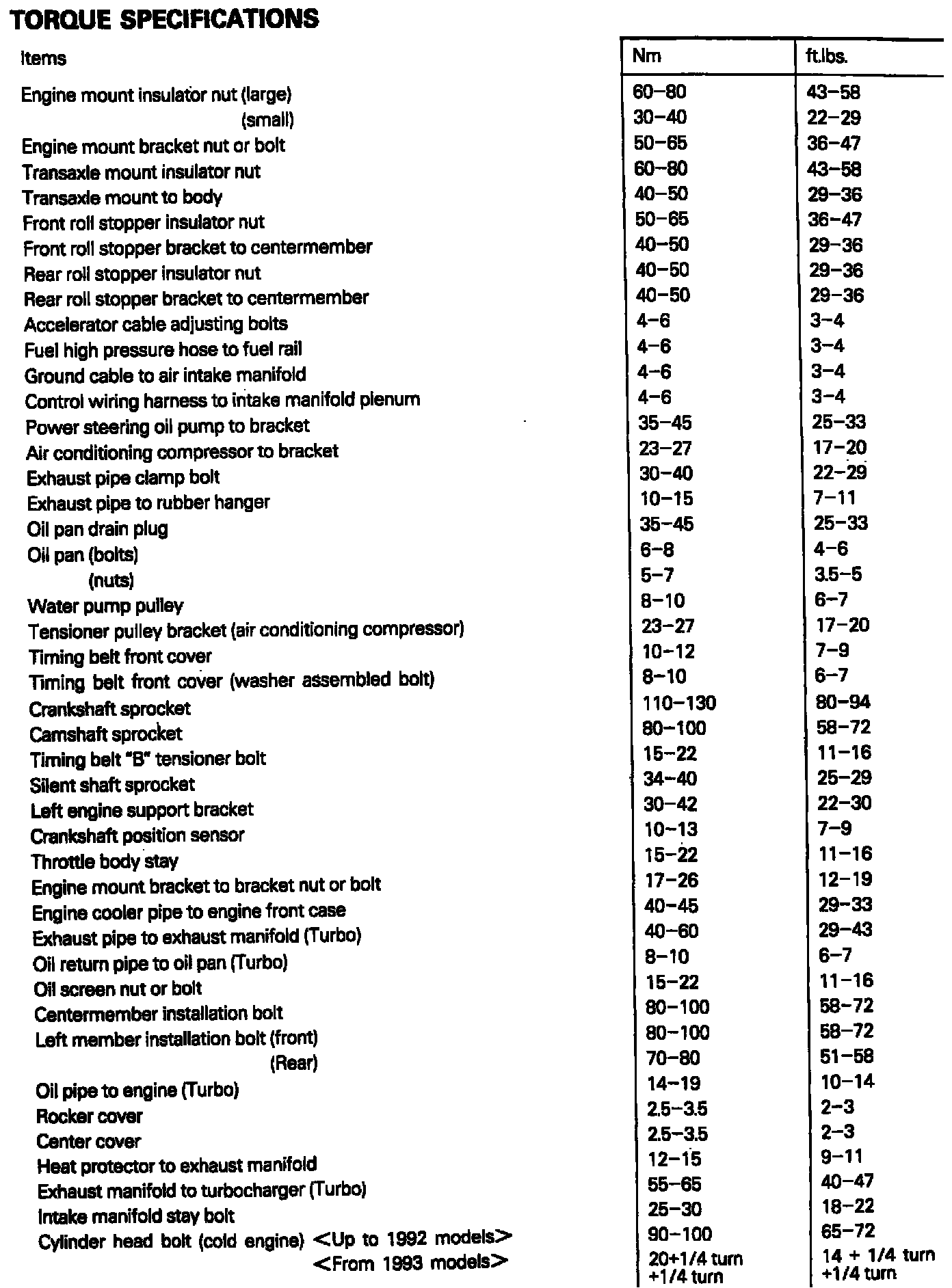 Torque Specifications