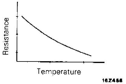 The intake air temperature sensor terminal voltage increases or decreases as the sensor resistance increases or decreases. Therefore, the intake air temperature sensor terminal voltage changes with the intake air temperature, decreasing as the temperature rises.