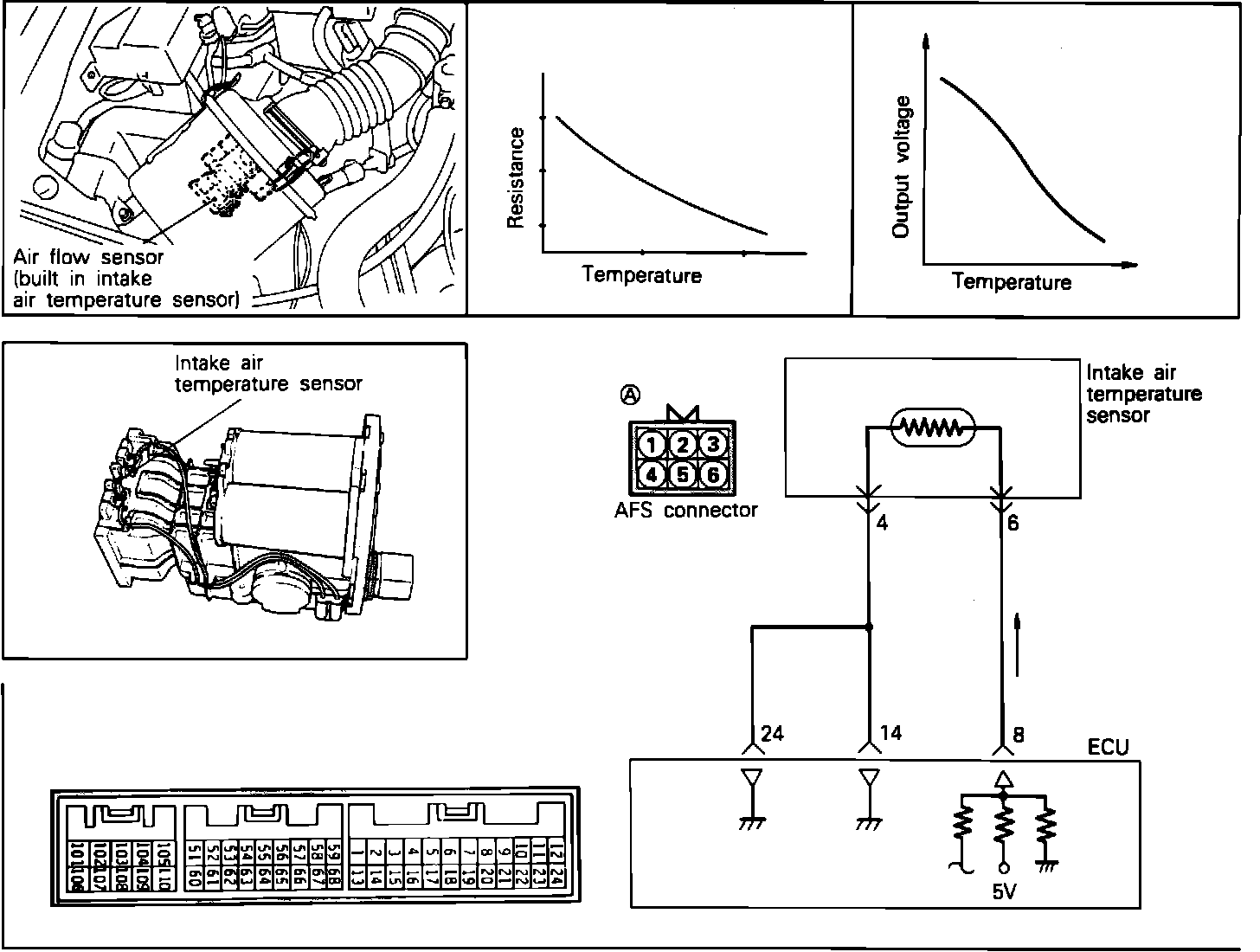 The Intake Air Temperature Sensor is a thermistor which measures intake air temperature as a resistance value.