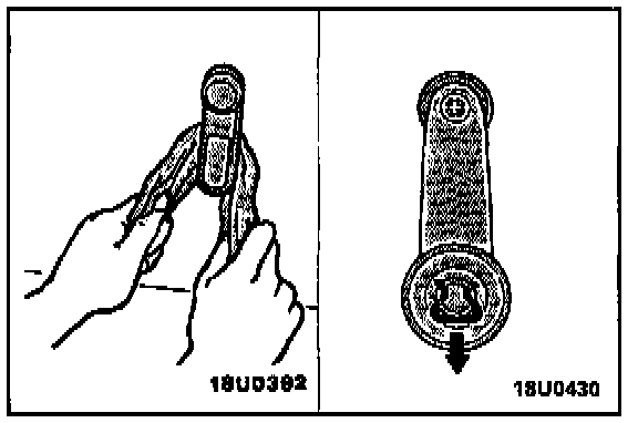 2. Fully close the front door glass, and install the regulator handle so that it faces as shown in the illustration.