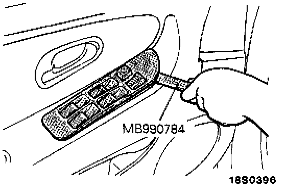 The power window switch has clips at the front, so use the special tool to remove the switch from the front.