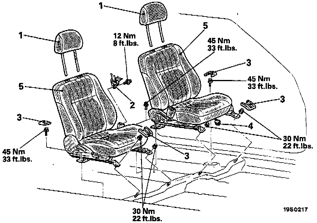 NOTE: After provisionally tightening the seat assembly mounting nuts and bolts in every installation location, fully tighten them to the specified torque.