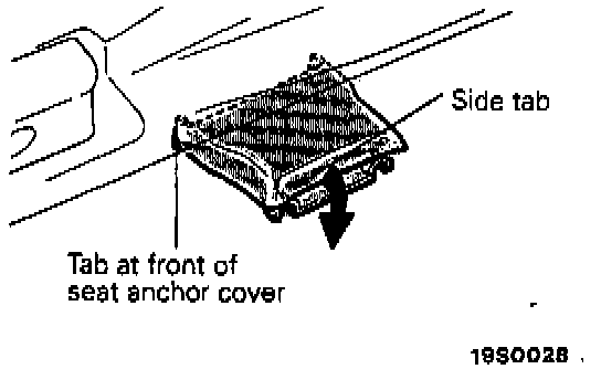 After securely inserting the tab at the front of the seat anchor cover into the seat mounting bracket, turn the cover in the direction of the arrow in the illustration to insert the tab at the side into the seat mounting bracket.