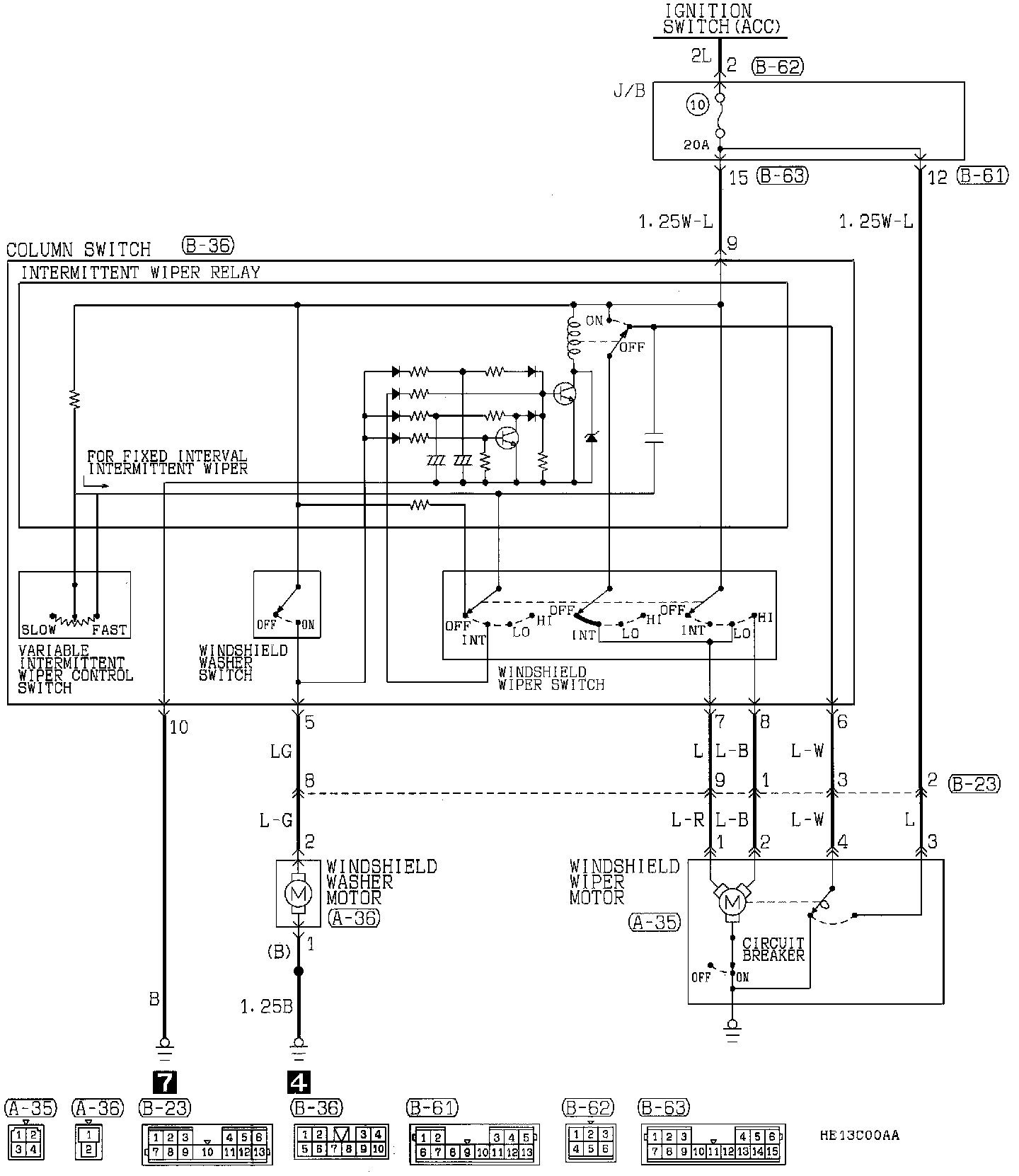 Windshield Wiper And Washer Circuit:
