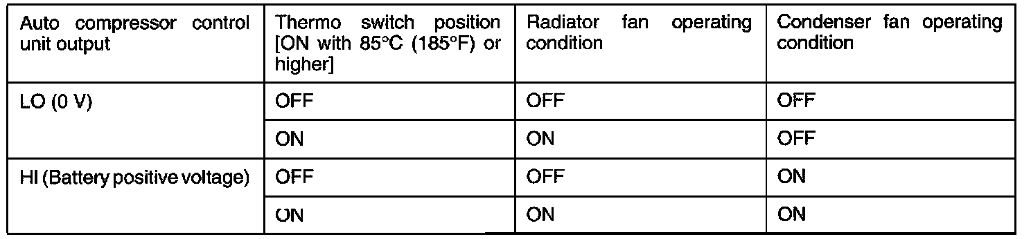 1. When auto compressor control unit outputs LO signal (0 V)