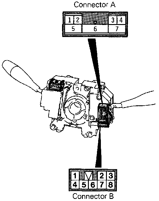 Operate the switch and check for continuity between the terminals.