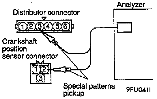 2. Connect the special patterns pick-up of the analyzer to the terminal 3 of the distributor connector (in order to inspect the signal waveform of the camshaft position sensor).