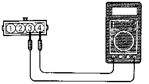 2. Check the continuity between the throttle position sensor connector side terminal (3) and terminal (4).