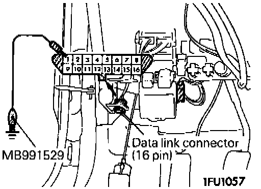 1. Using the special tool (diagnostic trouble code check harness), connect the diagnostic test mode control terminal (terminal 1) of the data link connector to the ground.