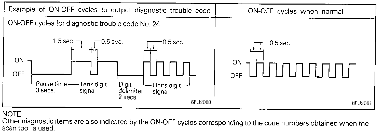 3. Read the diagnostic output on the basis of the ON-OFF cycles of the check engine/malfunction indicator lamp.