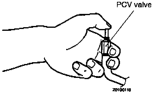 5. Place a finger at the opening of the positive crankcase ventilation valve and confirm that vacuum of the intake manifold is felt.