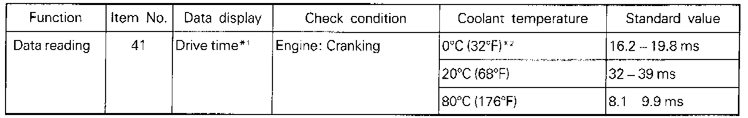 *1: The Injector drive time rotors to when the supply voltage is 11 V and the cranking speed is less than 250 RPM.