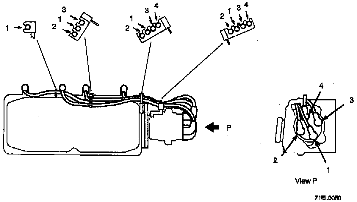 2. The numerals on the support and clamp indicate the spark plug cable No.