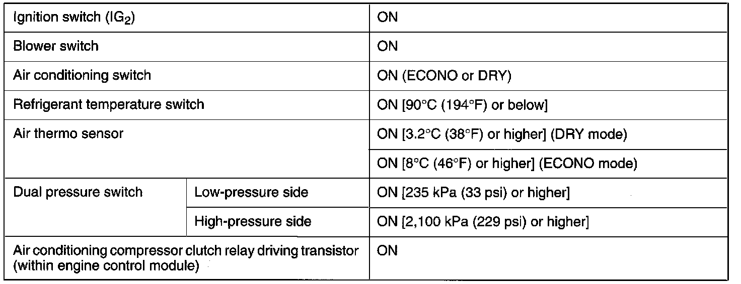 Air Conditioning Compressor Cluth Relay ON Conditions: