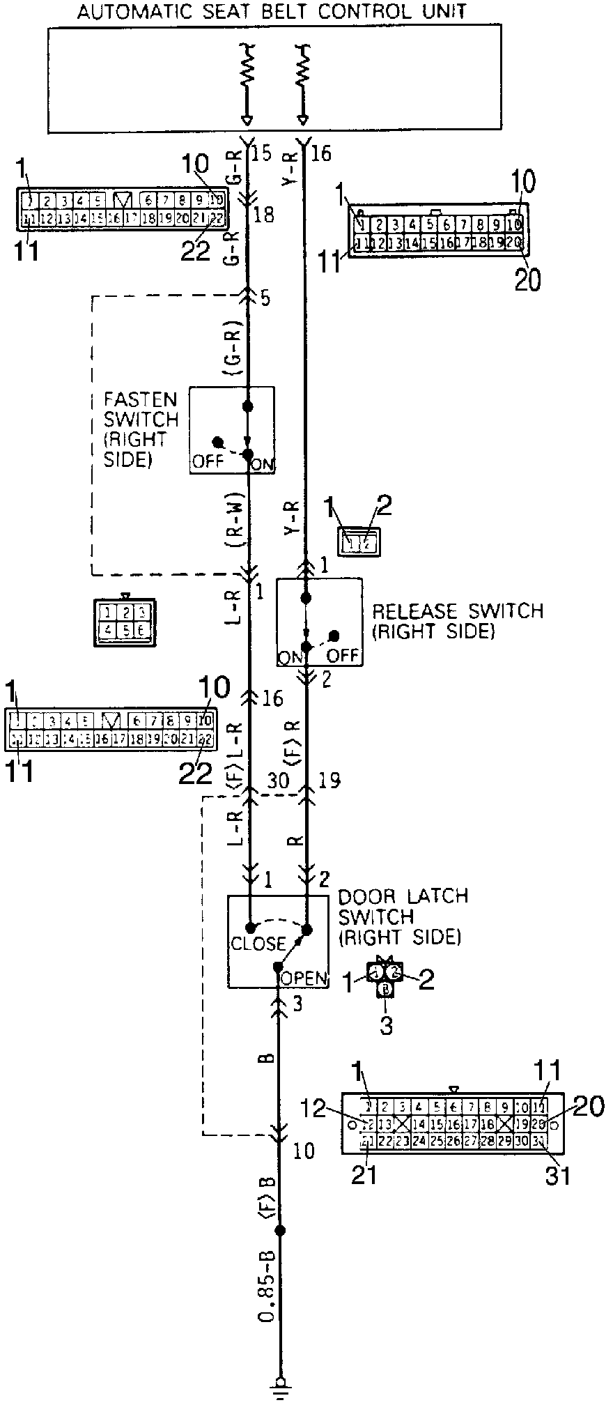 Fig. 38 Door Latch Switch, Fasten Switch, & Release Switch Circuit: