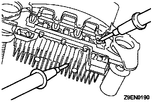 Check for continuity between negative rectifier and
