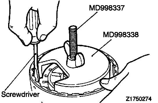 Compress the return spring with the special tool.
