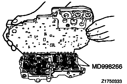 3. Secure the lower valve body with the bolts. Then, remove the special tools.