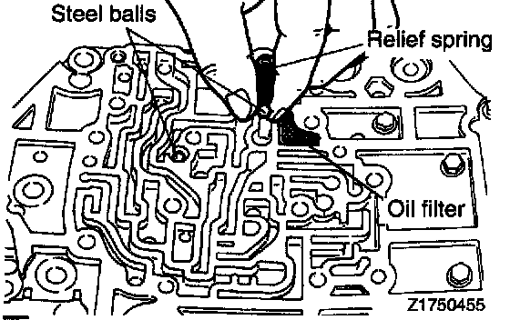 C. OIL FILTER I STEEL BALL I RELIEF SPRING LOCATION