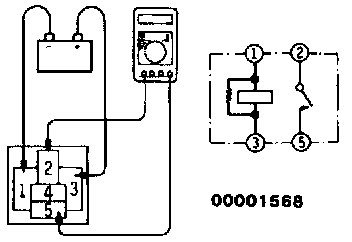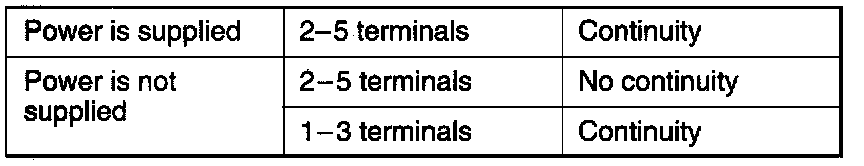 2. Apply voltage to terminal 3, and check the continuity between the terminals when terminal 1 is grounded.